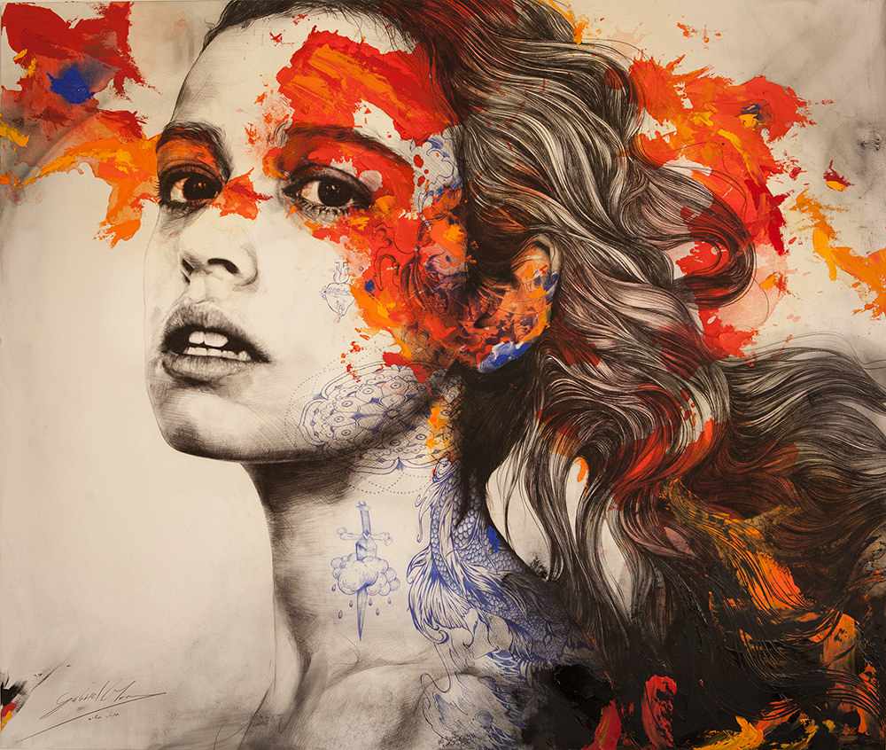The only romance worth pursuing in the summer is with mangoes. I'm tempted to completely ignore the couple in the foreground, although they are beautifully rendered. The prince has a lance in one hand, and perhaps he will use it to knock a few fruits to the ground if they ride that far. The lady is smaller, and on her own horse, but has an arm resting on the man's shoulder. The horses are very close together and seem to match each other's gallop.